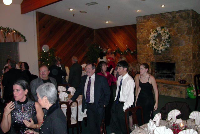 Some of the members lined up for Couple's (and other) shots in front of the fireplace |