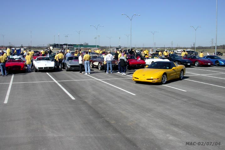 Vettes were staged by generation and color as they arrived,