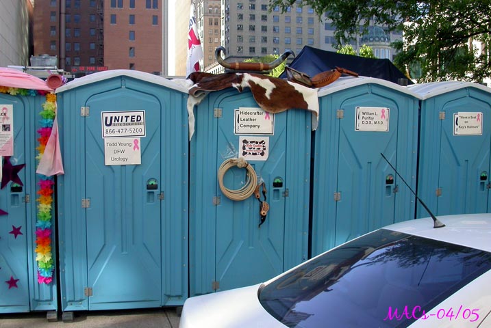 The porta-johns are decorated with everything from a sign to... well, you look and see - some have lots of time spent on them.