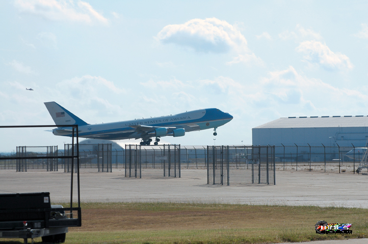 a glance over at the President's plane, parked where this
