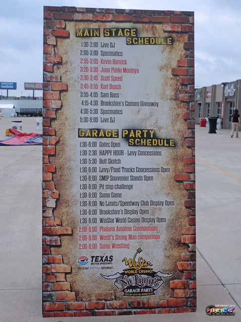 Across the infield road from the Garage Party exit gate,
