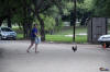 lots of chickens and roosters running around - some being