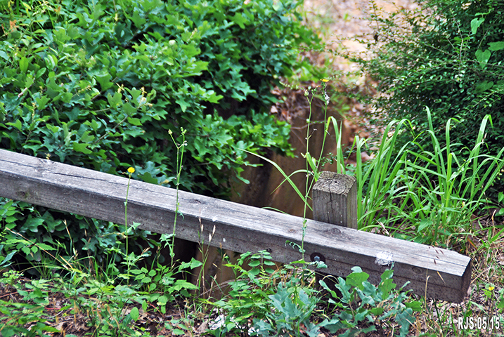 The tunnel exit (now overgrown) and the path to the steps