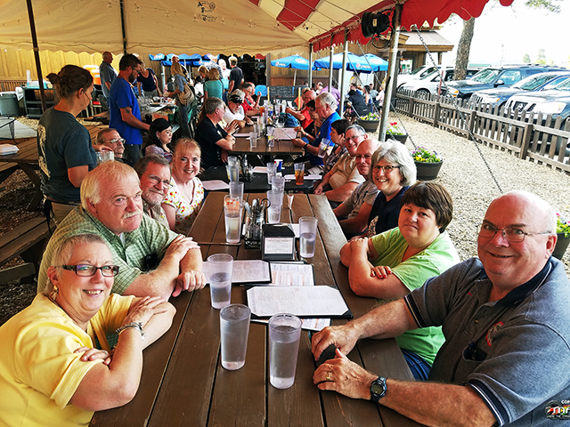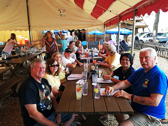 group of 27 outside, under their America Flag tent