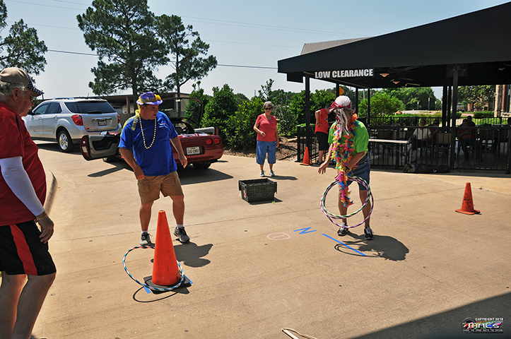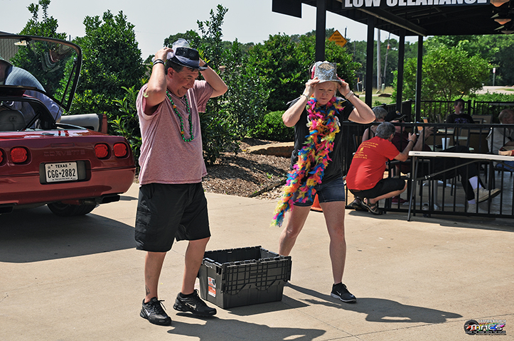 was a Mardi Gras Theme getting us all geared up for NCCC Convention this year. This was a non-driving funkhana but official (per NCCC Rules) a Corvette must be involved in the event, so you started and ended in the Corvette. Each team was allowed to make two runs. Per NCCC Rules, there are four Classes of teams: A=Male / Female, B=Male / Male, C=Female / Female, D=Female / Male