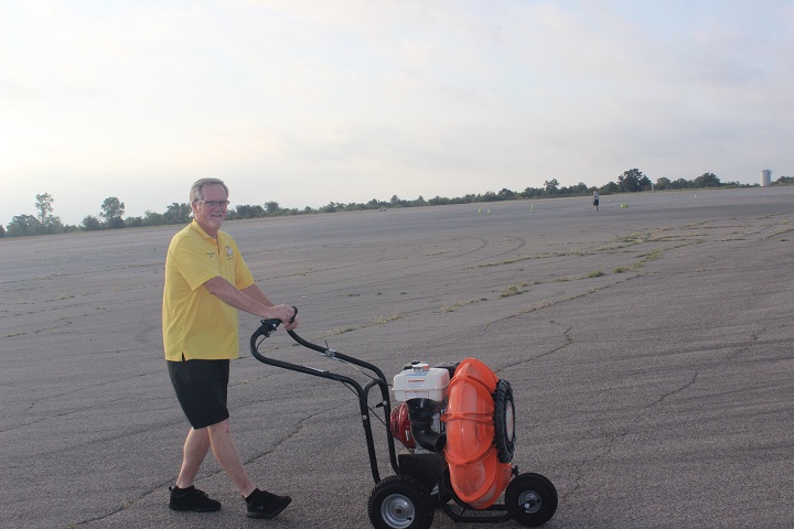 Doug blowing off track... Glenda, Becky, Vicki, and Cydney setting up in the