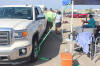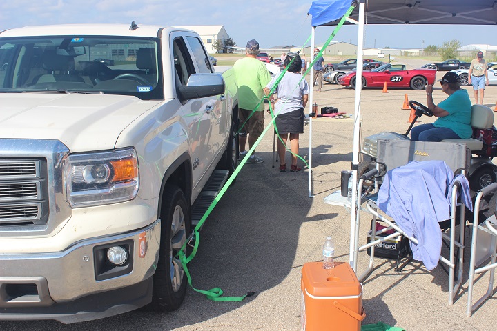 the tents to Doug's truck to keep them from blowing away