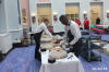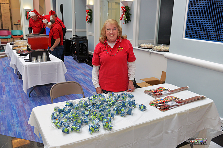 Vicki, Cathy, Debbie, and Becky along with other workers getting the craft tables ready. They worked with the kiddos to complete the crafts |