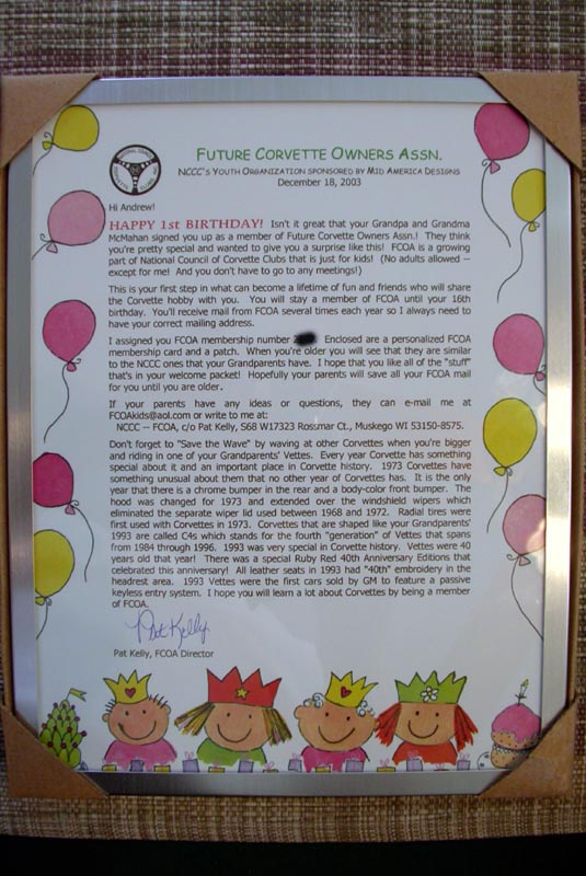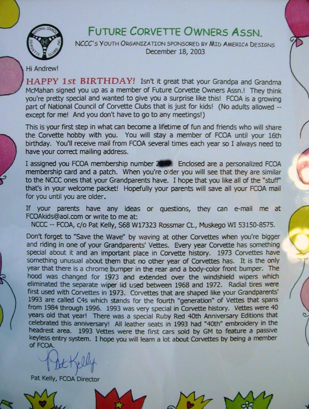 enroll him/her in the Future Corvette Owners Association (FCOA), NCCC's
