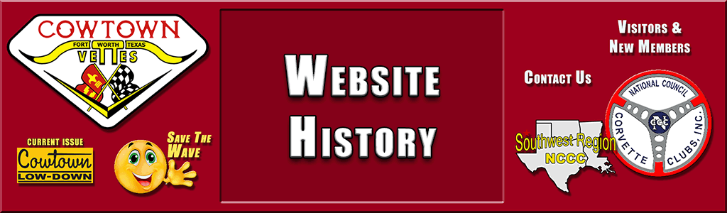 | WEBSITE AWARDS | MISSION STATEMENT | To provide the latest information on upcoming Cowtown Events for our members, including all Meetings, Socials, Charity and Competition events. To provide NCCC SW Region events and various NCCC National events, also including the FCOA and National Corvette Museum. To accurately document the Activities and History of Cowtown Vettes. To provide contact information for our Club, its Officers, Board of Directors & Committee Chairs. To provide charity and community involvement information that Cowtown Vettes participates in throughout the year. To provide listings of national affiliations of Cowtown Vettes. To provide listings of our Club Sponsor and other Vendors which offer Members Discounts on products and services. To Accurately record the history of Cowtown Vettes... over time, there will be information and photos from the past 30 years added to provide a complete history of Cowtown Vettes on the website. The website is formatted for print size rather than screen size, which is a little different than most websites. Our membership (by majority) prefers this format so this is the format we have opted to retain.
